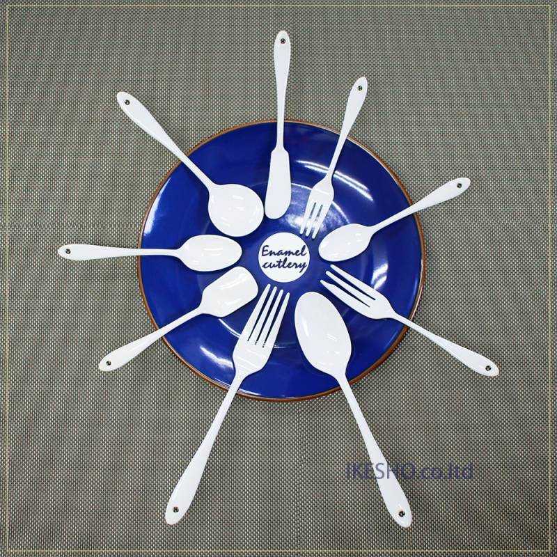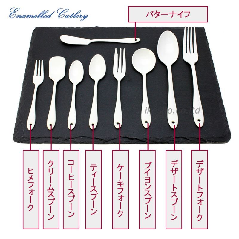 暖かみのあるオフホワイトのホーローカトラリーシリーズです。