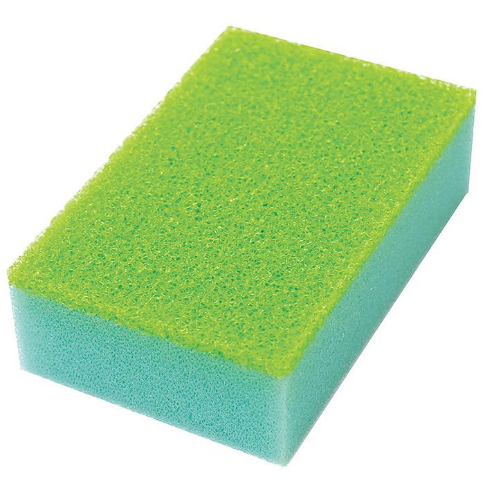 高耐久スポンジに従来の不織布ではなく強力スポンジを張り合わせることにより、研磨剤なしでメラミン食器なども傷つけません。