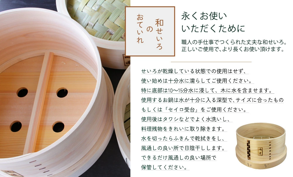 IKESHOオリジナルの「池匠 和セイロ」は、良質なヒノキと竹を使用。