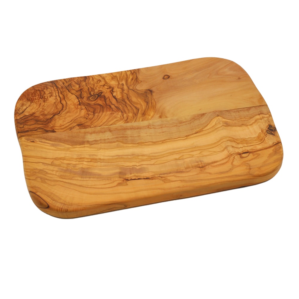 堅く丈夫なオリーブの木で作られた、温かみのある色合いと木目のカッティングボード。