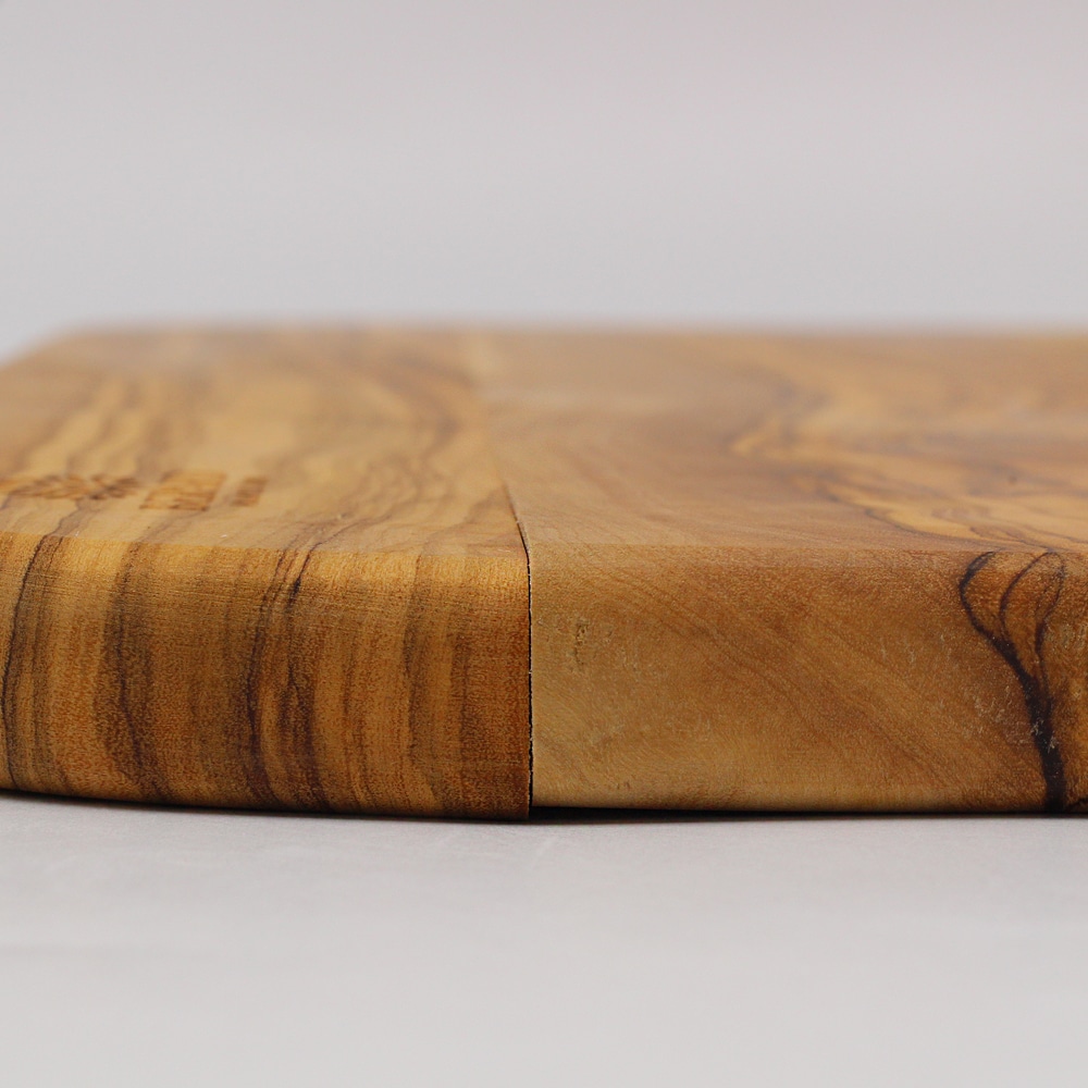 堅く丈夫なオリーブの木で作られた、温かみのある色合いと木目のカッティングボード。