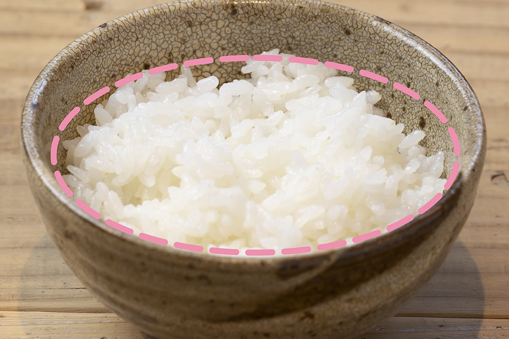 これにふんわり盛ると200kcal分のごはんに!沢山盛られているように見えるから目から満足できますよ!。