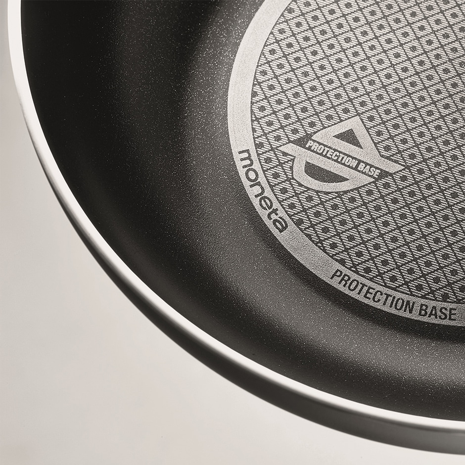 moneta社が開発した「NET INDUCTION」ボトム(鍋底)はスチールを編みこんでメッシュ状にすることによりIH使用時の熱効率を向上させ、加熱時間を短縮することによりエネルギー消費を削減することができます。3:PROTECTION BASE(R)
