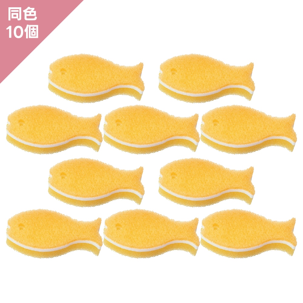 【同色10個】マーナ おさかなスポンジ イエロー 10個組
