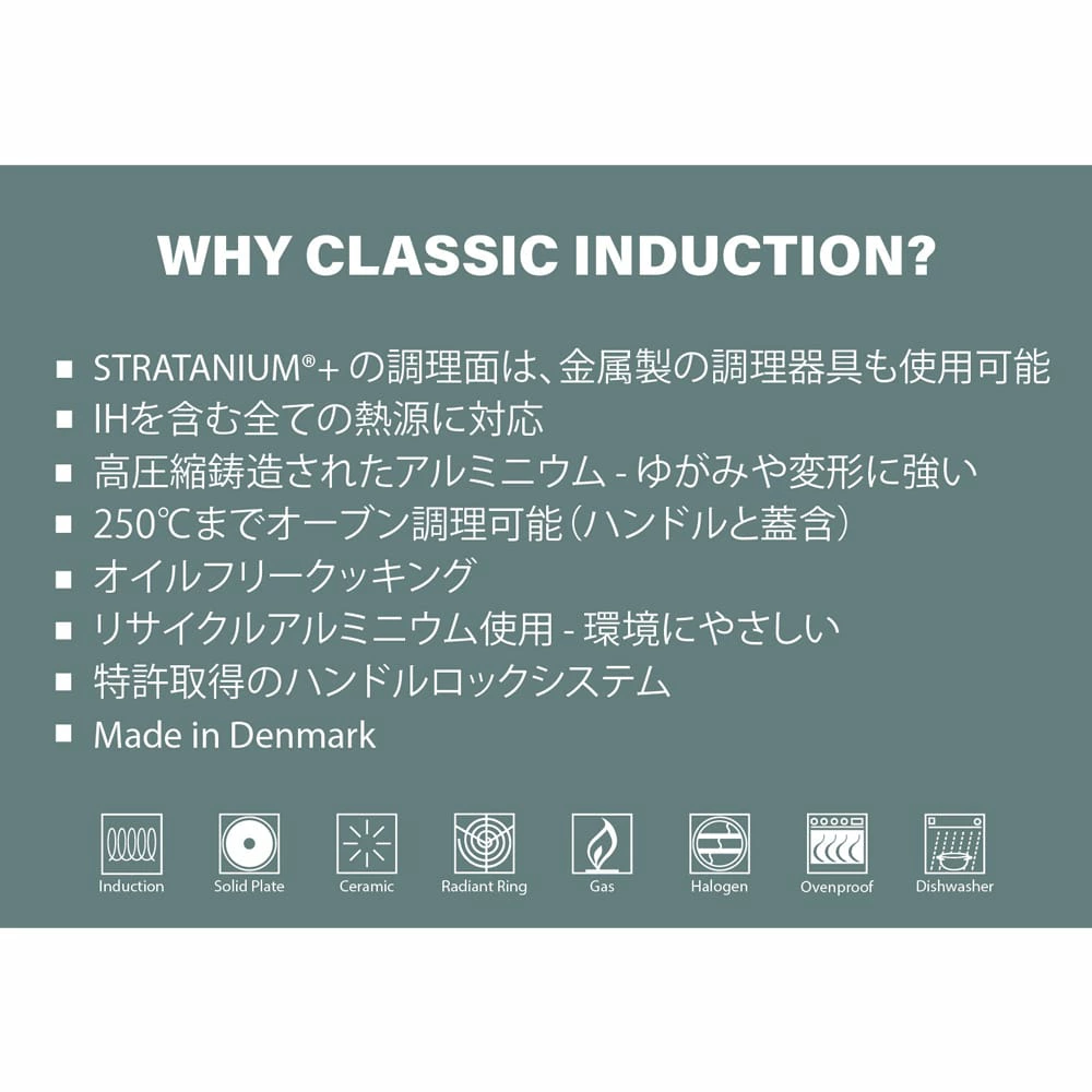 すべてのフライパンにはSCANPANのSTRATANIUM(R)ノンスティックコーティングを採用。