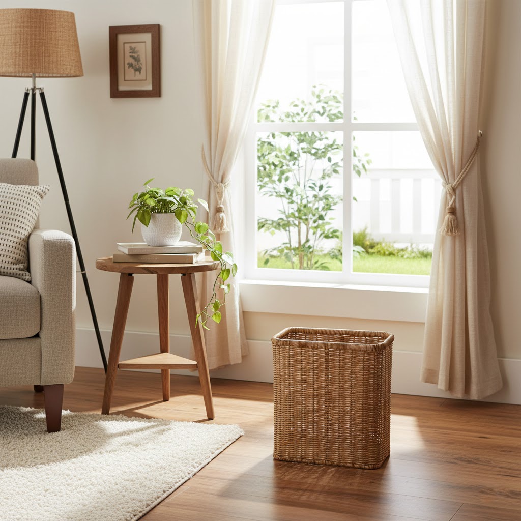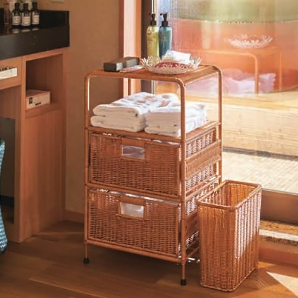 ラタン風 洗える角型ゴミ箱 キャメル