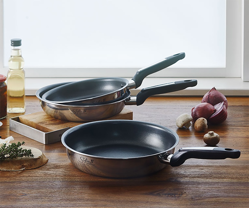 フライパン本体はステンレスとアルミの全面2層構造(エッグパンは全面3層)で抜群の熱効率を実現。