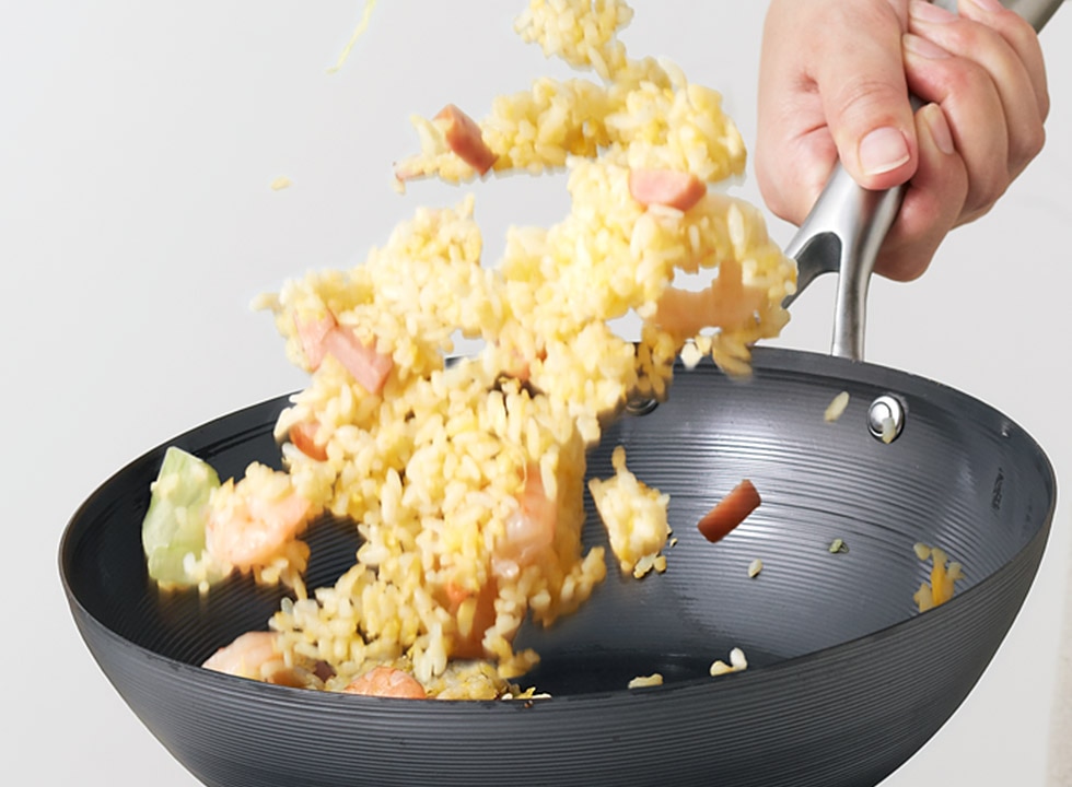 鉄の高い蓄熱性で、焼き物はきれいな焼き色に、炒め物はシャキッと仕上がります。